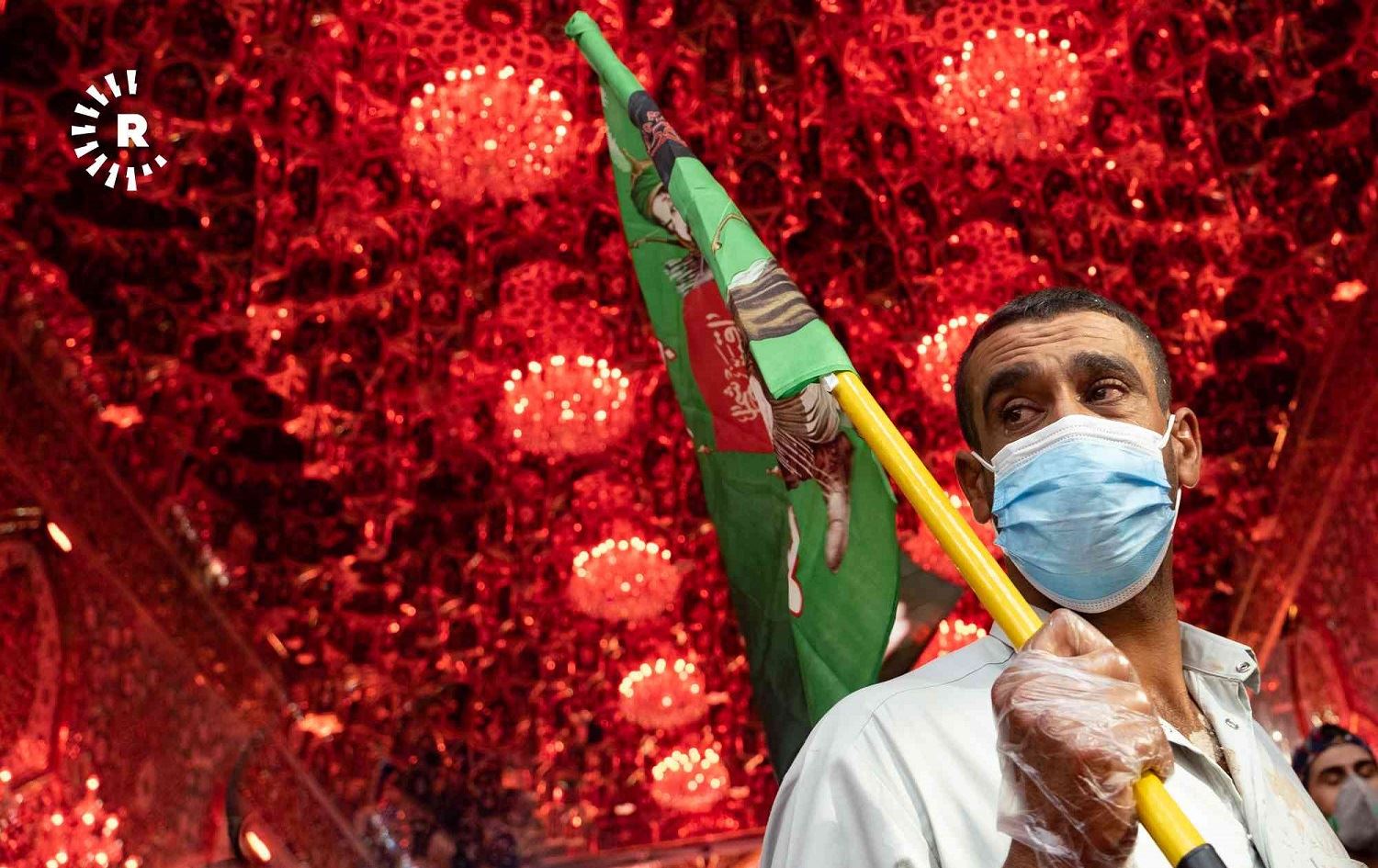 A man wears a mask and gloves while attending Ashura events in Karbala, Iraq on August 30, 2020. Photo: Bilind T. Abdullah/Rudaw