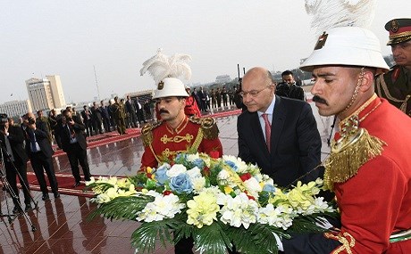 Salih laid a wreath of flowers on the monument of the Unknown Soldier during a ceremony in Baghdad.