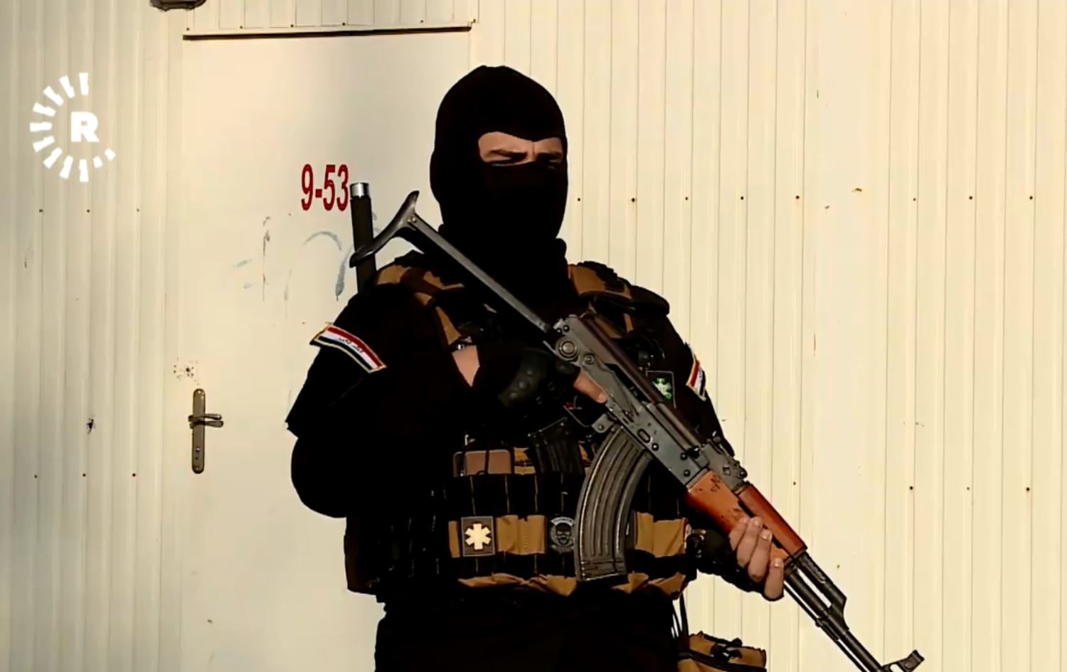A member of the Popular Mobilization Forces (PMFs) stands guard at a paramilitia base in Nineveh, Iraq, February 6, 2020. Photo: Rudaw TV
