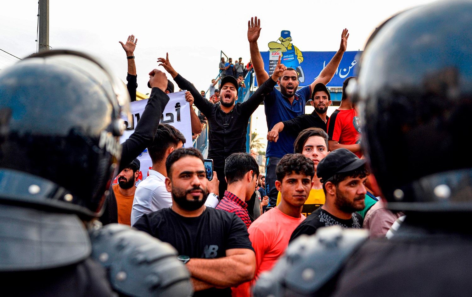 Protesters chant slogans during a demonstration against corruption and lack of basic services in Najaf, Iraq on October 1, 2019. File photo: AFP
