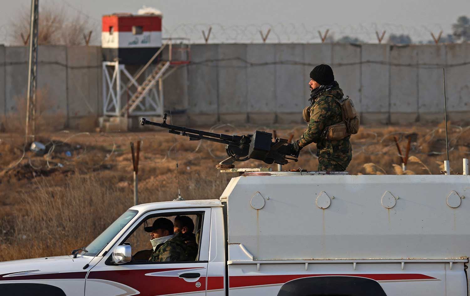 Members of Iraq's Popular Mobilization Forces (PMF) patrol along a concrete wall at the Iraqi-Syrian border in Al-Qaim, west of Iraq, on January 23, 2026. File photo: AFP