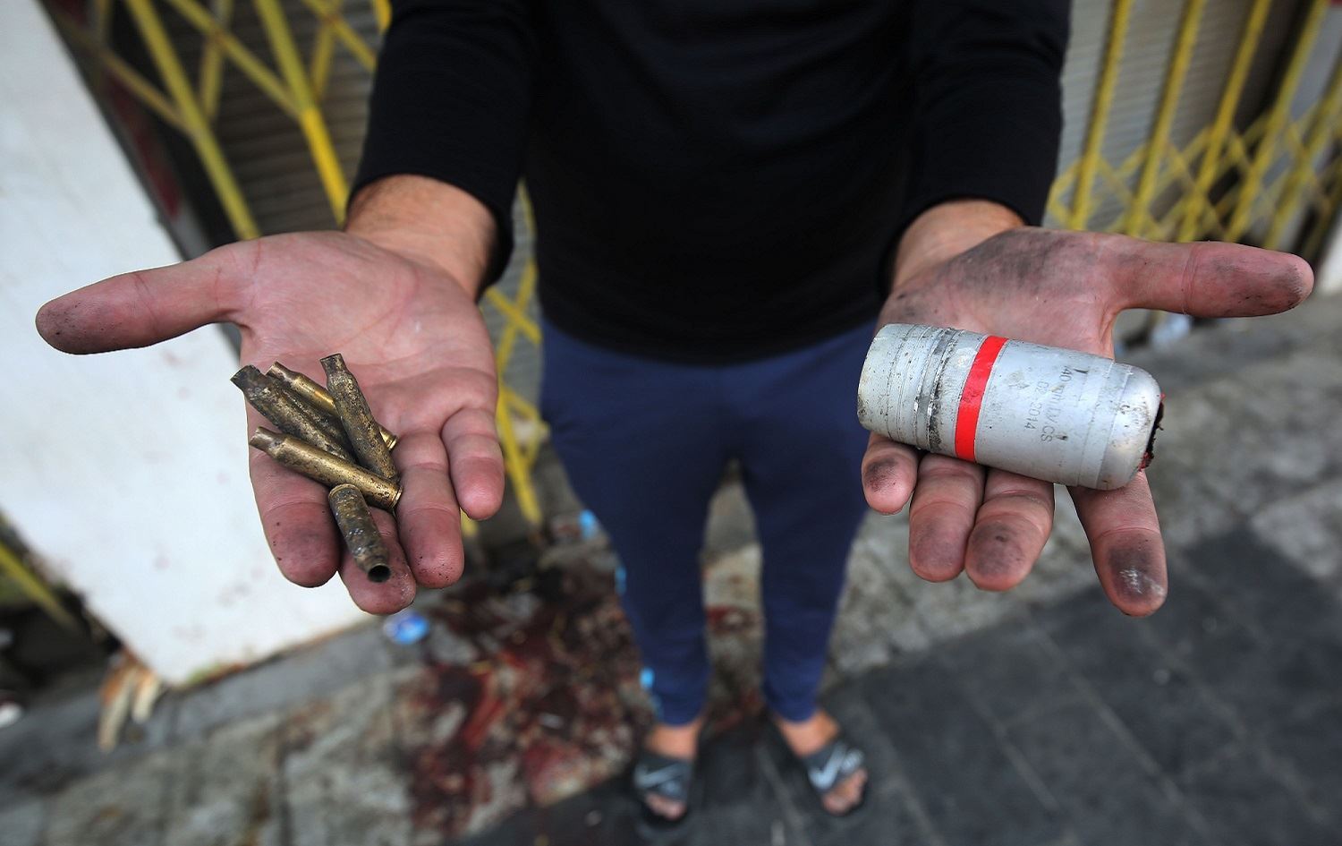 A protester holds the casings of live rounds (L) and a spent tear gas canister reportedly fired by riot police during clashes in the Iraqi capital Baghdad, October 3, 2019. File photo: Ahmad al-Rubaye / AFP