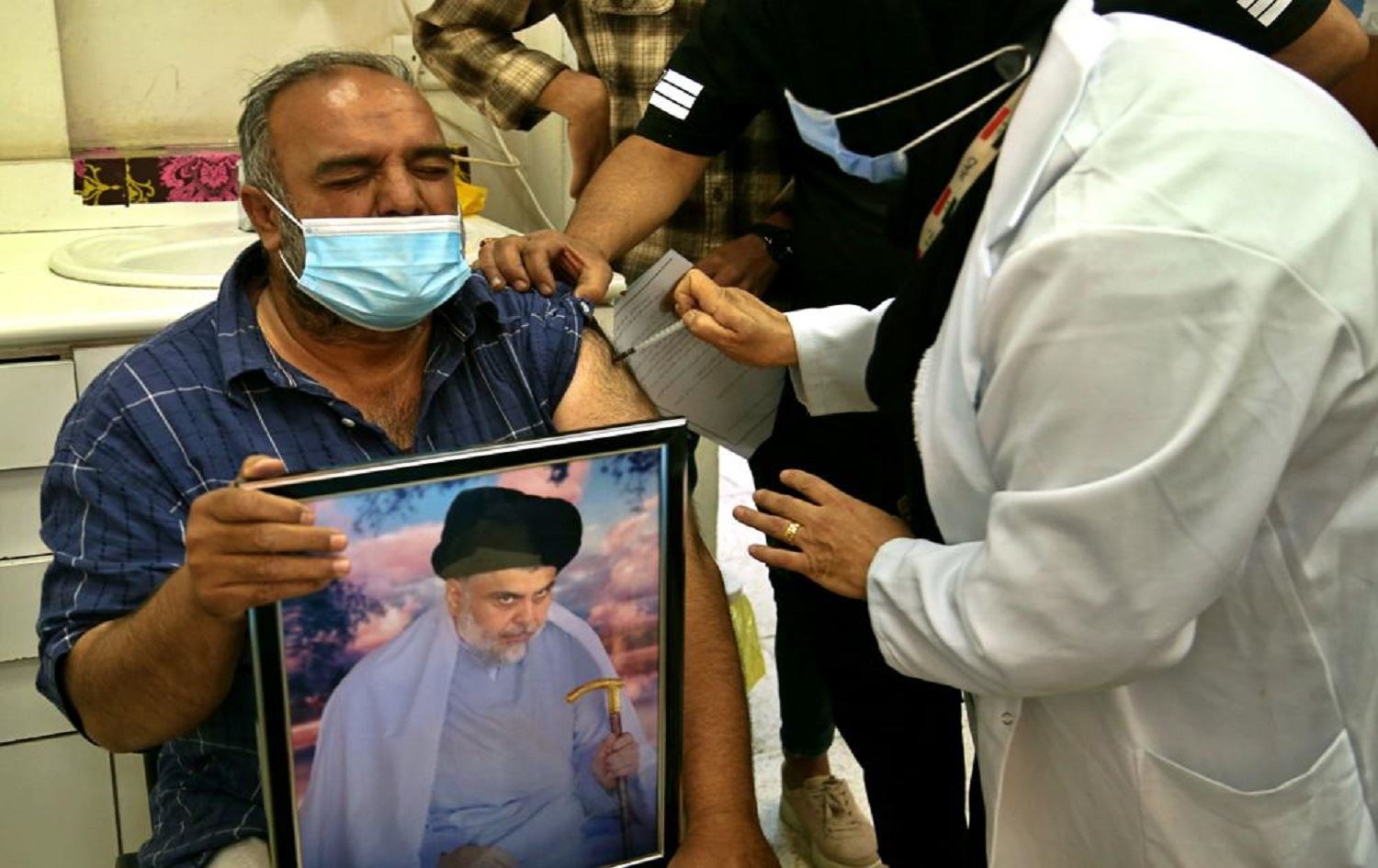 Last week, as sluggish vaccination efforts continued, pictures of the black-turbaned al-Sadr, wearing a black mask and getting jabbed in the arm, began circulating on social media.