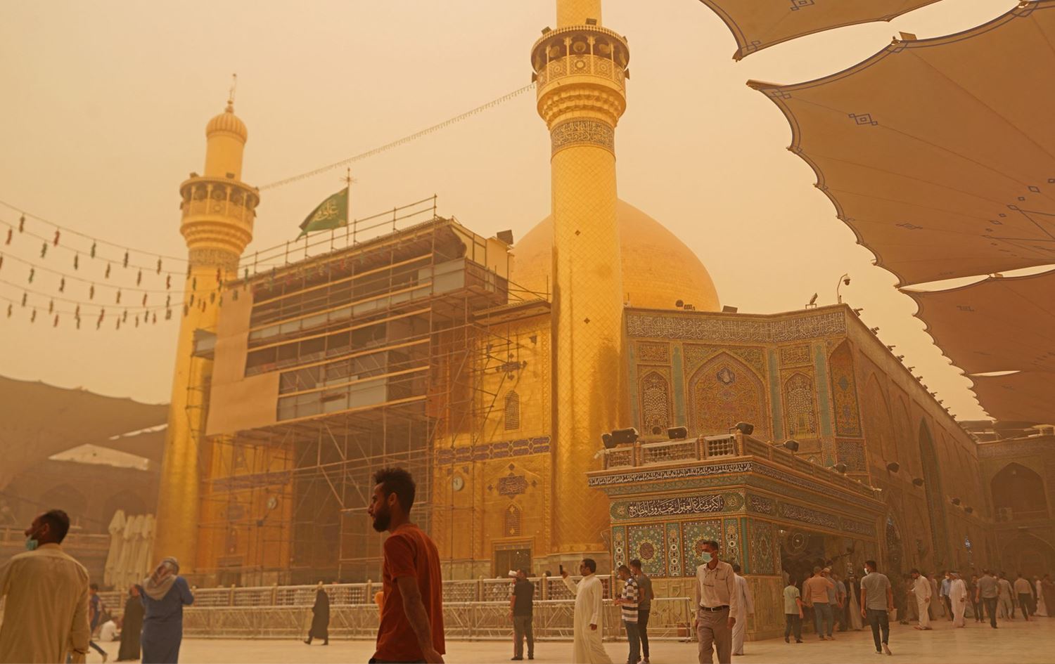 Iraqis visit the Imam Ali shrine during a sandstorm in Iraq's holy city of Najaf on May 5, 2022. Photo: AFP
