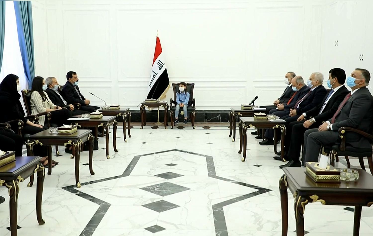 At the request of Kadhimi, the girl sat in the premier’s seat.