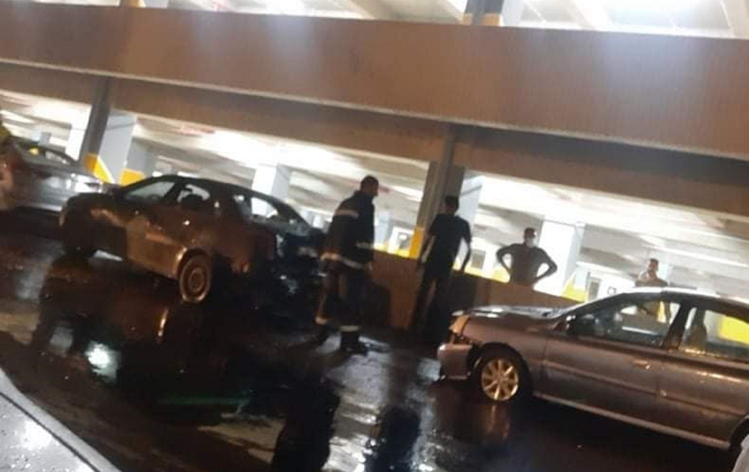 Vehicles damaged after a Katyusha rocket hit a parking garage at Baghdad International Airport on September 6, 2020. Photo: Baghdad International Airport on Facebook