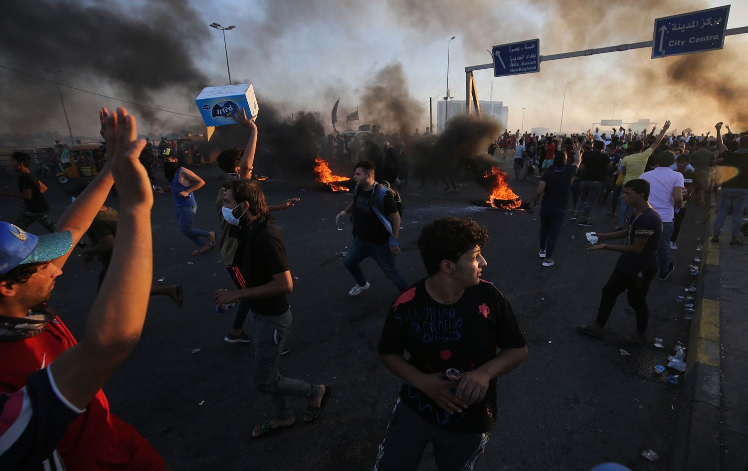 Protests in Baghdad and Iraq’s southern cities, now in their sixth day, have been subject to violent response by security forces, including the use of live ammunition, tear gas and water cannons. Latest figures from the Iraqi High Commission for Human Rights (IHCHR) put the protester death toll at 99, with close to 4,000 injured.