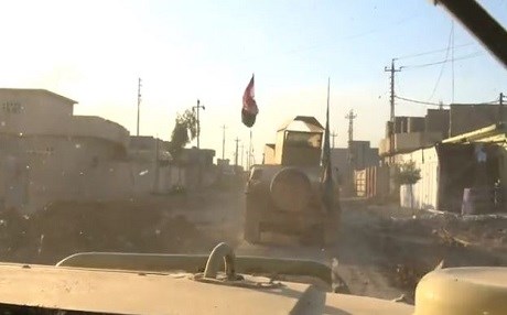 “From the southeast front, the 9th armored division and the third brigade of 1st division forces have entered the left bank and proceeded to go inside Intisar and Judaydat al-Mufti neighborhoods, and are continuing to clear the area of the terrorists ISIS. They cut the Kirkuk-Mosul road from the Judaydat al-Mufti direction.”
