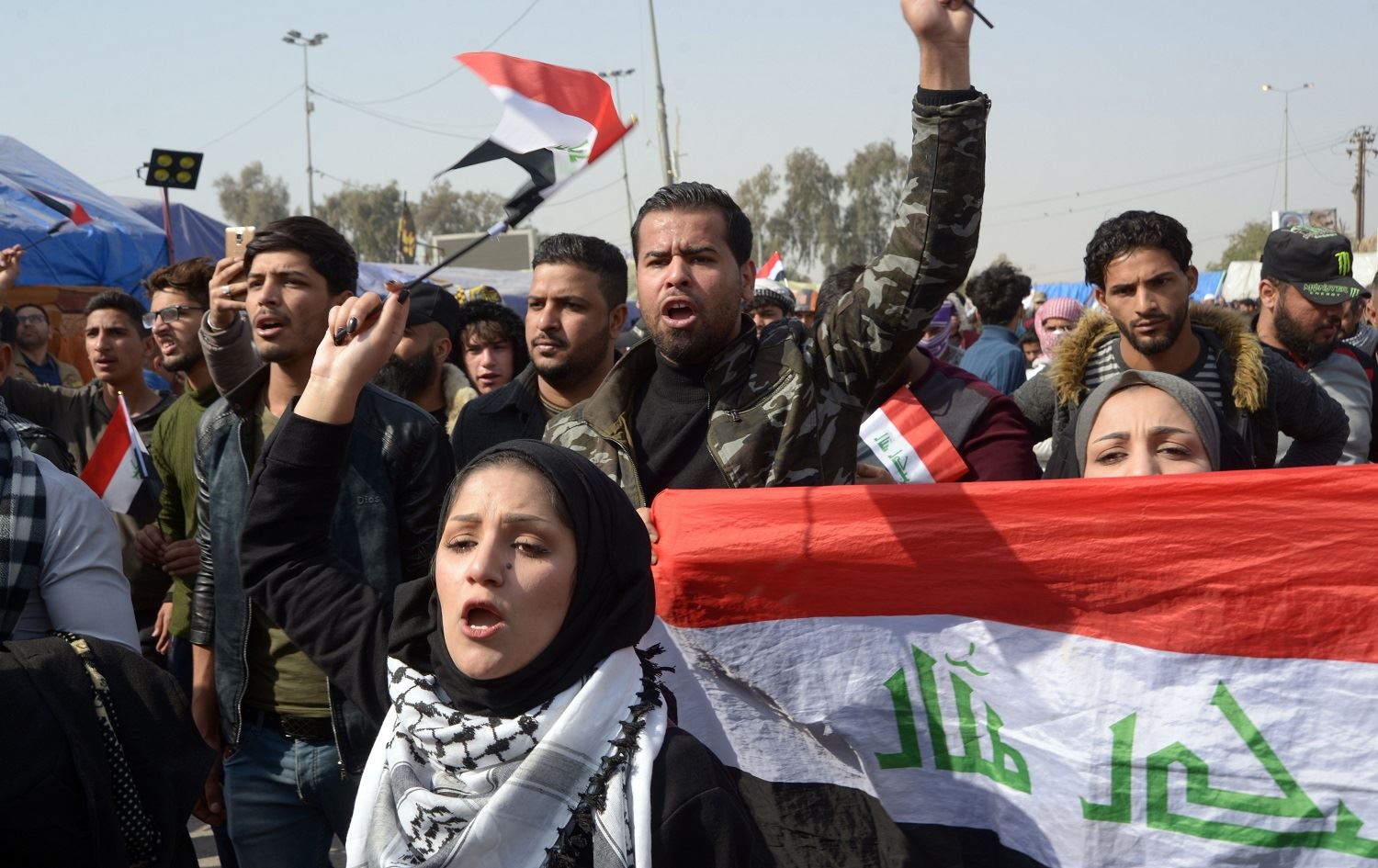 Iraqi anti-government demonstrators chant as they rally in the central city of Najaf on February 6, 2020. Photo: Haidar Hamdani / AFP
