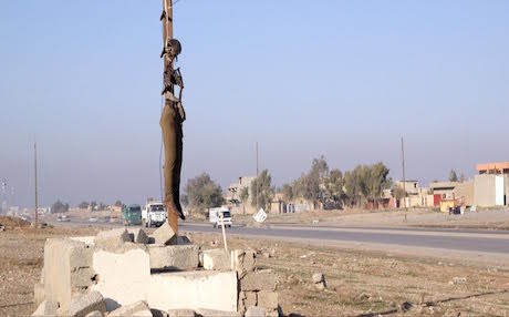 MOSUL, Iraq – There was a dead ISIS body handing from an electric power post across the street. The body had decomposed into a skeleton with the passage of time. It was a terrifying scene.