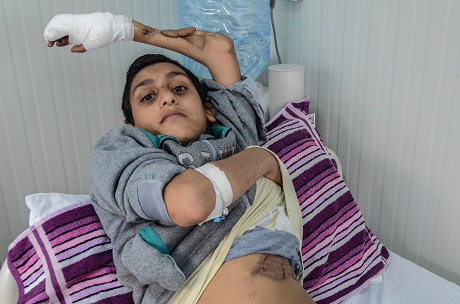 Her left leg was wounded during the last stages of the Mosul offensive in 2017, but her infection has kept it from healing.