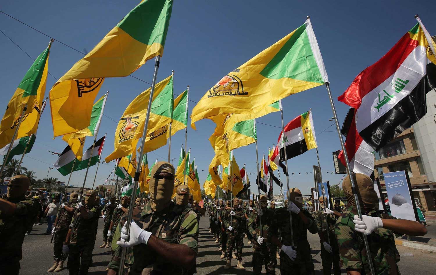 Members of the Iran-aligned Iraqi armed group, Kata'ib Hezbollah, participate in a military parade. File photo: AFP