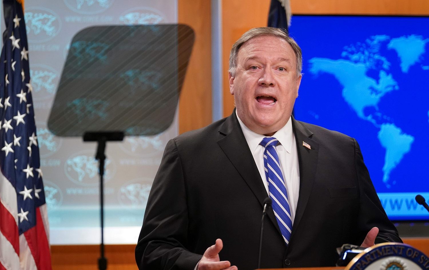 US Secretary of State Mike Pompeo speaks to reporters during a media briefing at the State Department in Washington DC, May 6, 2020. Photo: Kevin Lamarque / pool / AFP