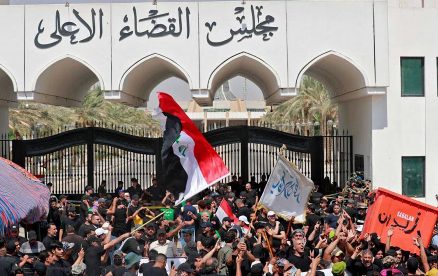 Supporters of Shiite cleric Muqtada al-Sadr gather outside the Supreme Judicial Council in Baghdad on August 23, 2022. Photo: AFP