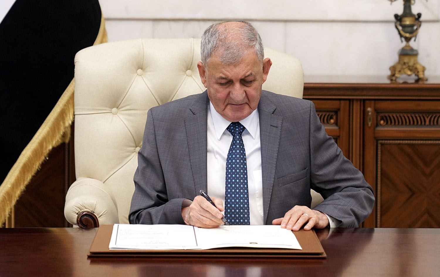 Iraqi President Abdul Latif Rashid approving the first batch of 86 ambassadors on September 7, 2025. Photo: Iraqi Presidency