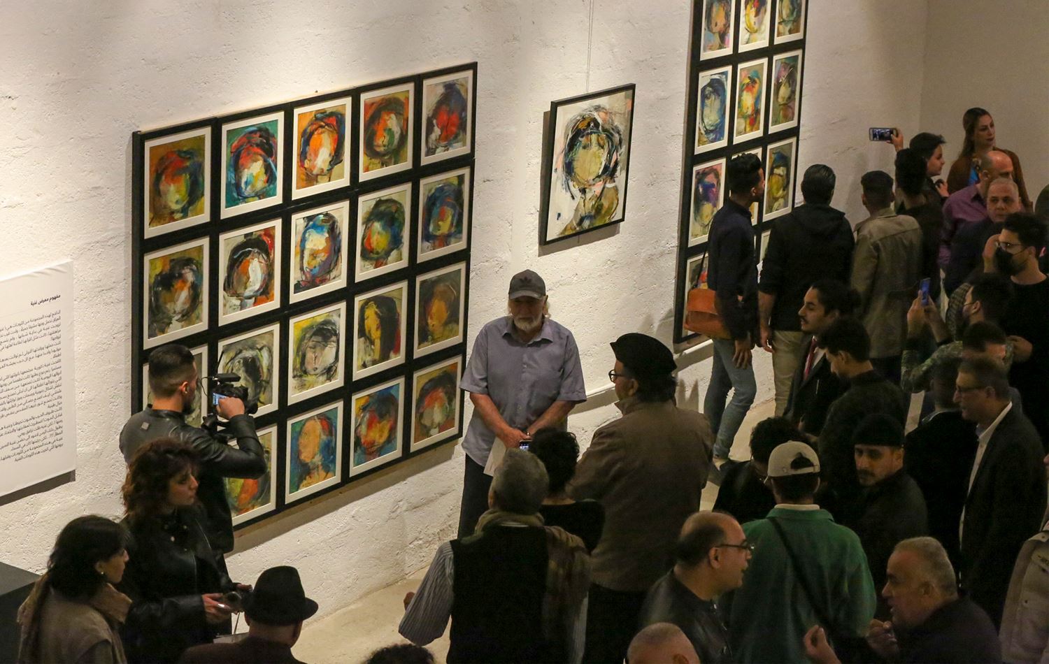 Visitors attend the opening of an exhibition by plastic artist Riyad Ghania in the Iraqi capital of Baghdad, on November 26, 2021. Sabah Arar / AFP