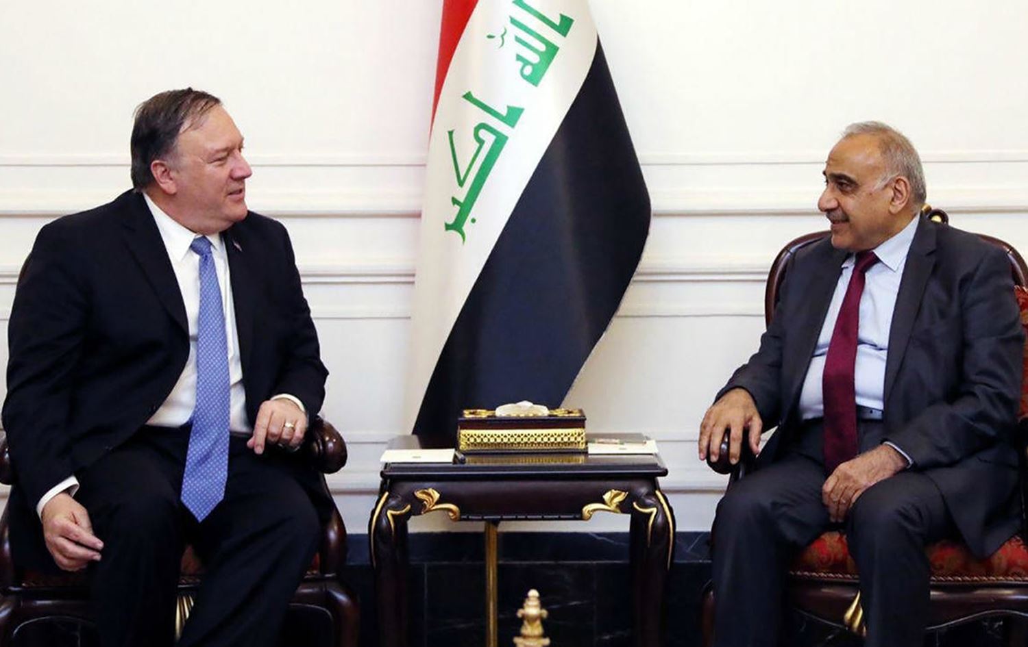 A handout picture released on May 8, 2019 shows Iraqi Prime Minister Adel Abdul Mahdi (R) meeting with US Secretary of State Mike Pompeo in Baghdad. Photo: Iraqi Prime Minister’s Press Office/AFP
