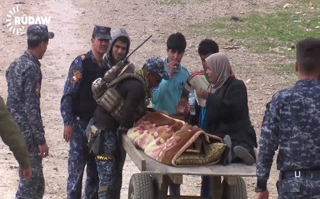 Rudaw cameras have captured images of people of all ages making their way out of the city carrying whatever they can on foot, while others carry the elderly and the sick on trolleys.