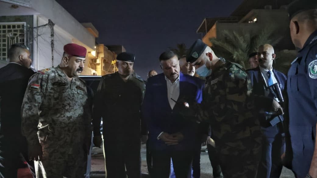 Iraqi interior minister visits areas targeted by aerial strikes in Baghdad on April 8, 2026. Photo: interior ministry