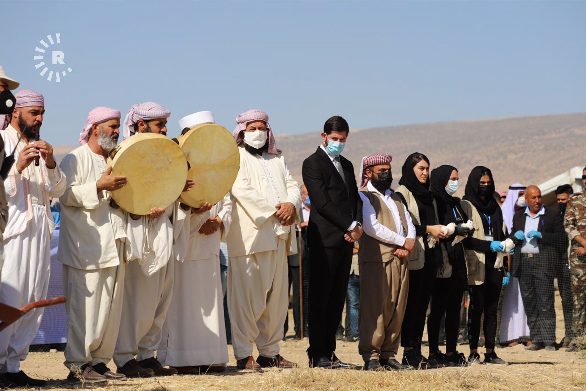 Yezidis gather in the village of Solagh, on the southern side of mount Sinjar, for a ceremony marking the start of the exhumation of mass graves by the Islamic State (ISIS) on October 24, 2020. Photo: Fazel Hawramy / Rudaw