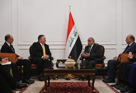 US Secretary of State Mike Pompeo (L) talks with Iraqi Prime Minister Adil Abdul-Mahdi (R) in Baghdad. Photo: Andrew Caballero-Reynolds / AFP / POOL