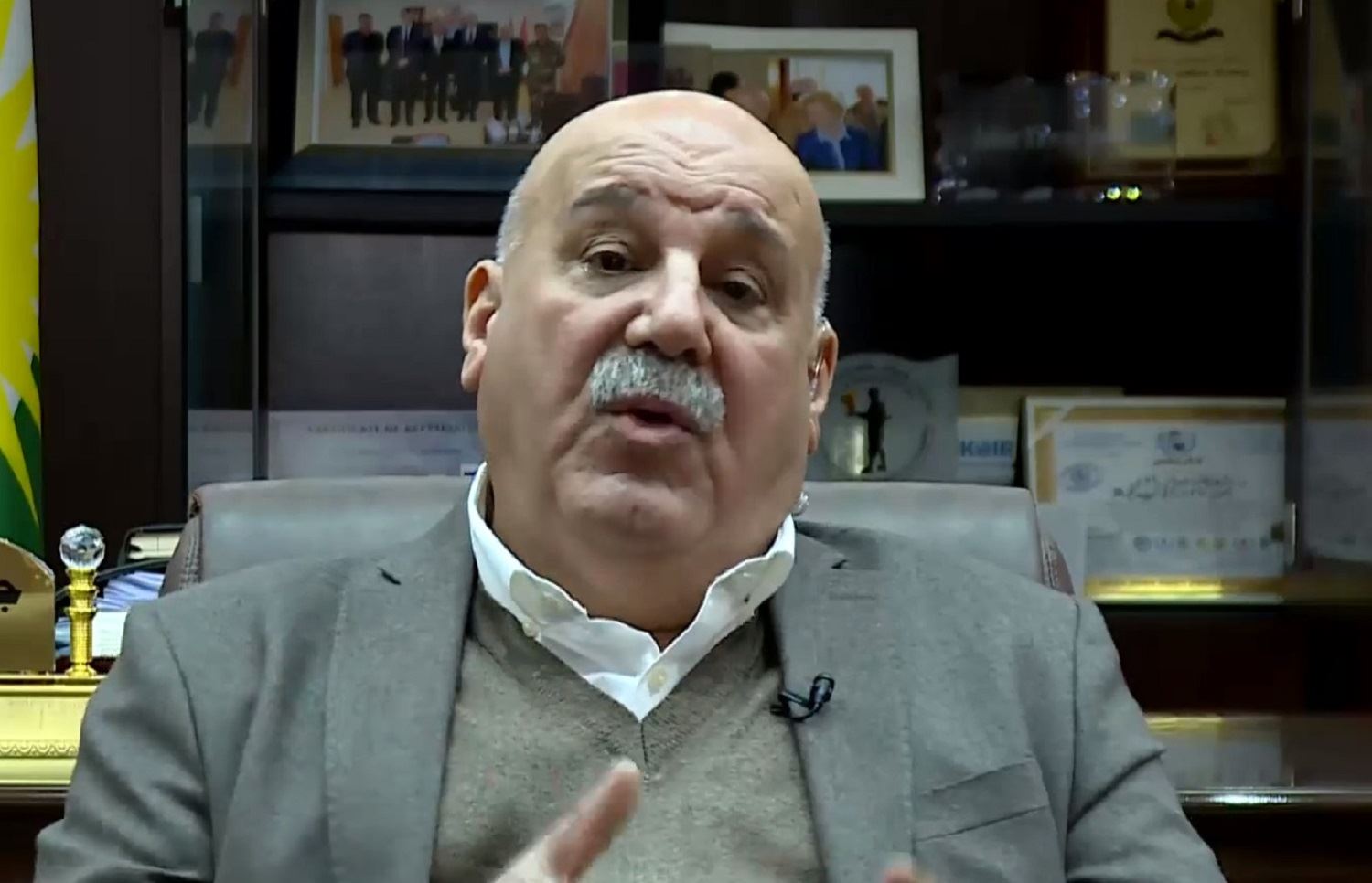Ministry of Peshmerga Affairs chief of staff Jabar Yawar speaking to Rudaw's Sangar Abdulrahman on Tuesday. Photo: Rudaw