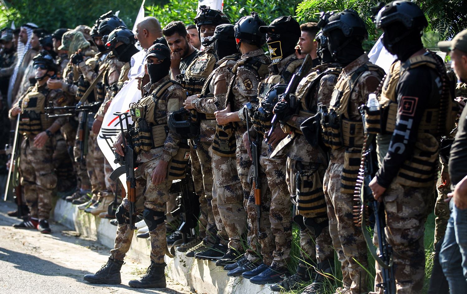 Members of PMF paramilitiaries stand guard during the funreal for Asaib Ahl al-Haq commander Wissam Alyawi in Baghdad on October 26, 2019. File photo: Ahmad al-Rubaye/AFP