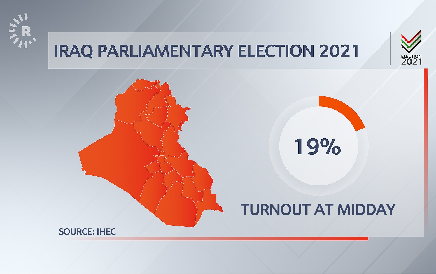 The turnout across Iraq for the public vote has reached 19 percent, according to the Independent High Electoral Commission (IHEC).