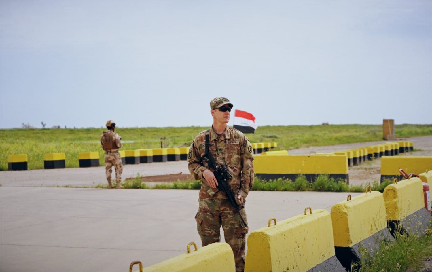 A US and Iraqi soldier at Qayyarah military base in south of Mosul on March 26, 2020, the day the base was handed over to Iraqi security forces. Photo: Fazel Hawramy/Rudaw