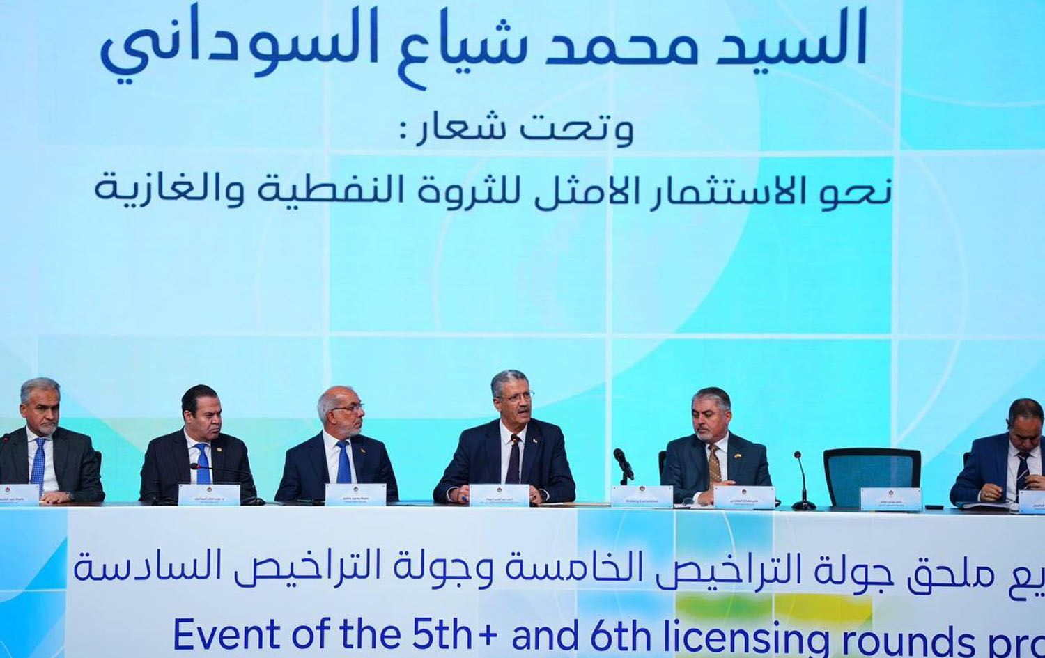 Iraqi Oil Minister Hayyan Abdul Ghani (center) during supplementary licensing round for oil and gas projects in Baghdad on May 11, 2024. Photo: Iraqi oil ministry