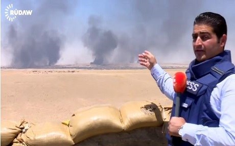 Iraqi military officials told Rudaw that retreating ISIS militants have set oil wells on fire to hide from air strikes in the thick smoke.