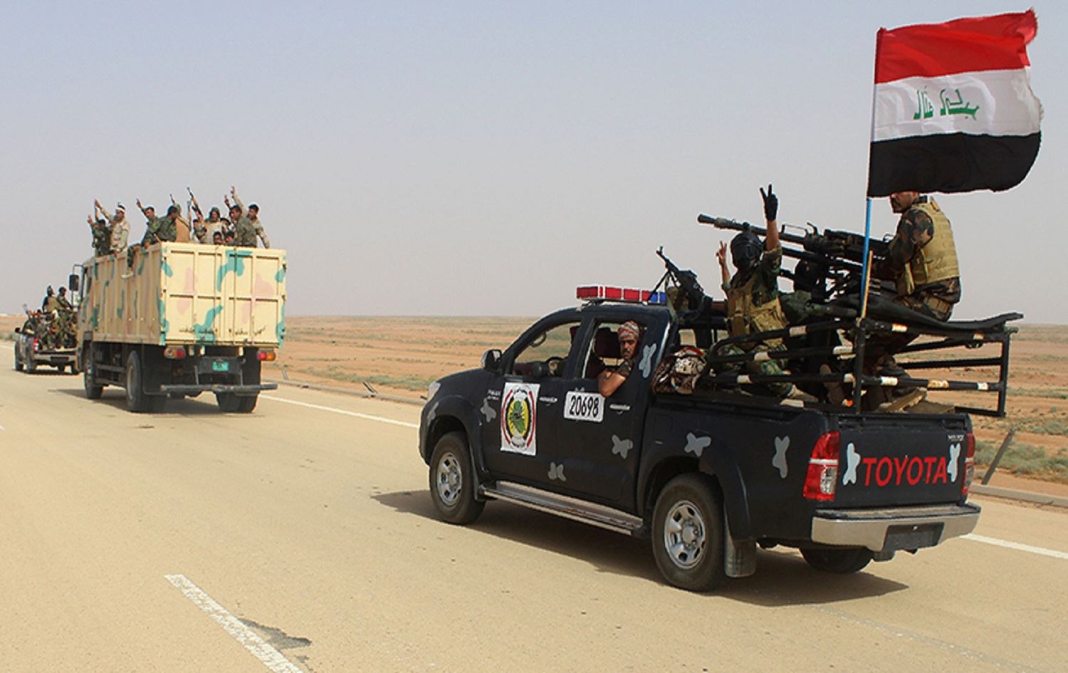 Iraqi government forces and local tribal fighters drive on the highway between the city of Ramadi and the town of Rutba, Iraq on May 16, 2016. Photo: Moadh al-Dulaimi/AFP