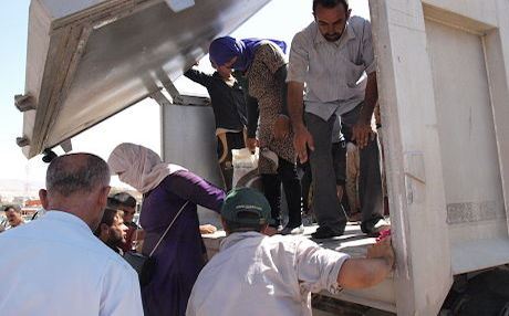 International and local aid organizations have been trying to help the thousands still stuck on the mountain without water and food, by dropping supplies from the air. Those who manage to reach safety still have a long wait after their long walk, to be then transported in trucks that are normally used to transport sand or grain.