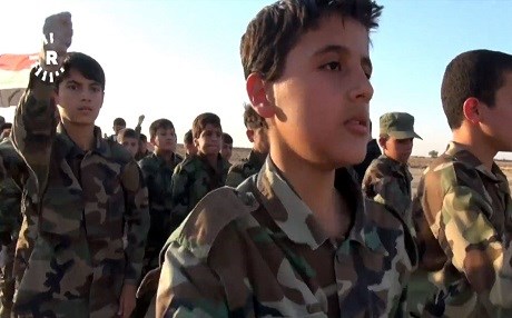 The children are under 18 years old. They are seen in military uniforms, receiving weapons training.