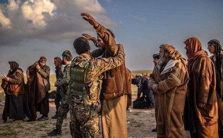 ISIS suspects are searched after leaving the group's last holdout of Baghouz, Syria, February 22, 2019. File photo: AFP