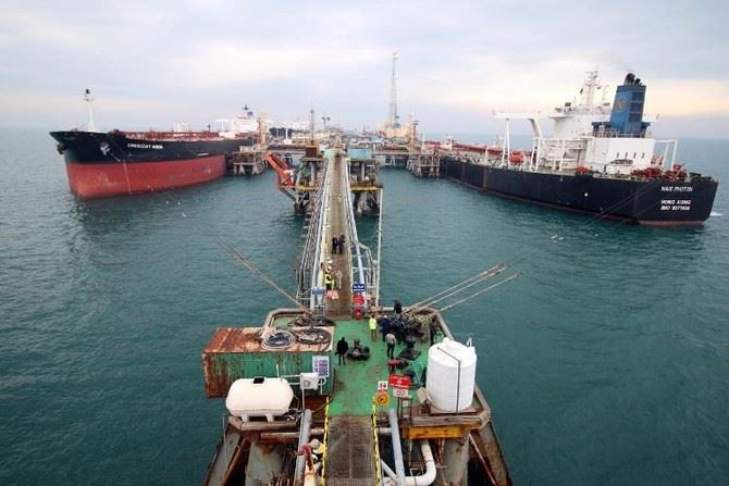 Oil tankers dock at a floating platform, offshore from the southern Iraqi port city of Al-Faw. Photo: AFP