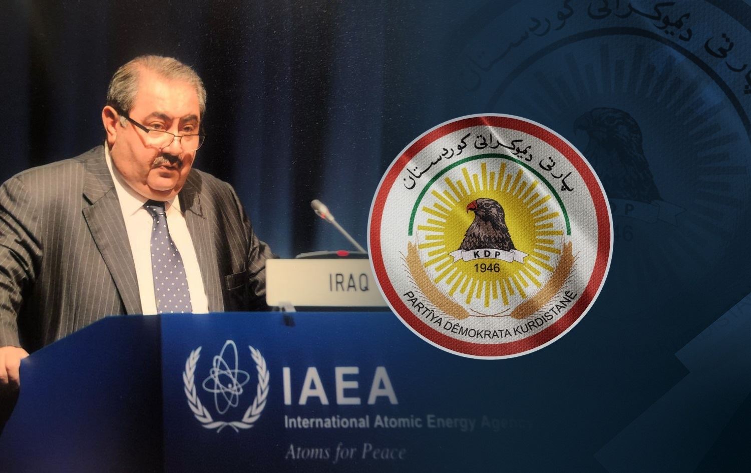 KDP candidate for president, Hoshyar Zebari. Photo: Zebari’s Twitter (Left); KDP logo (Right); Graphic: Rudaw