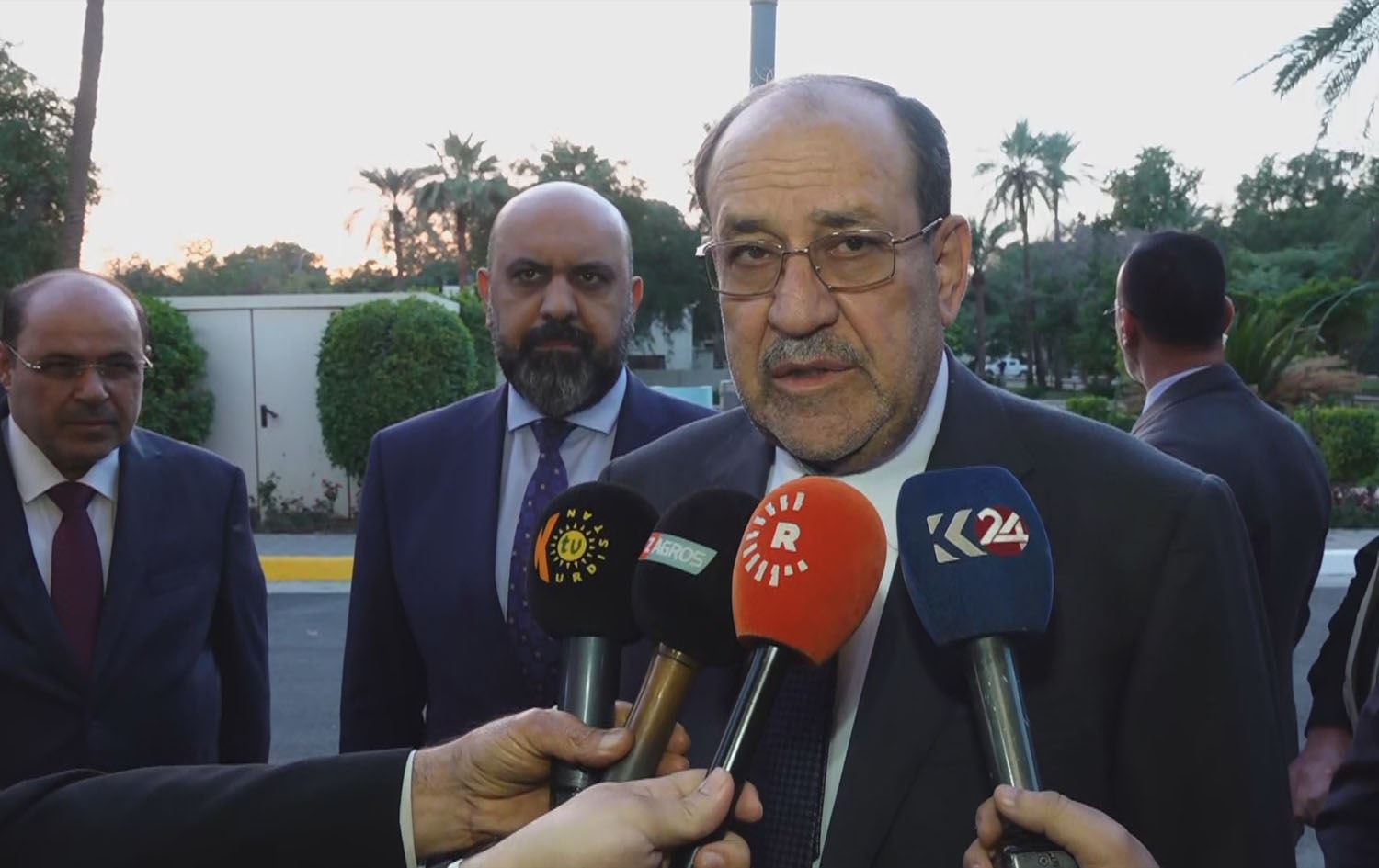 Nouri al-Maliki, head of the State of Law coalition speaking to reporters in Baghdad on January 13, 2024. Photo: Rudaw
