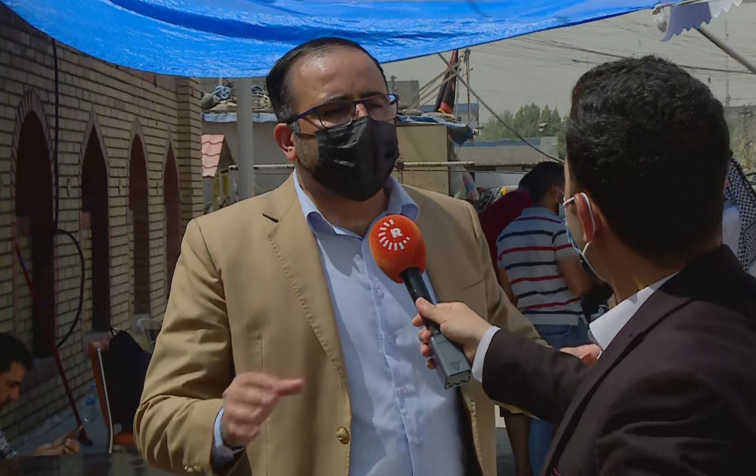 Iraqi health ministry spokesperson Saif al-Badr speaks to Rudaw in Baghdad’s Sadr City on August 13, 2021. Photo: Rudaw