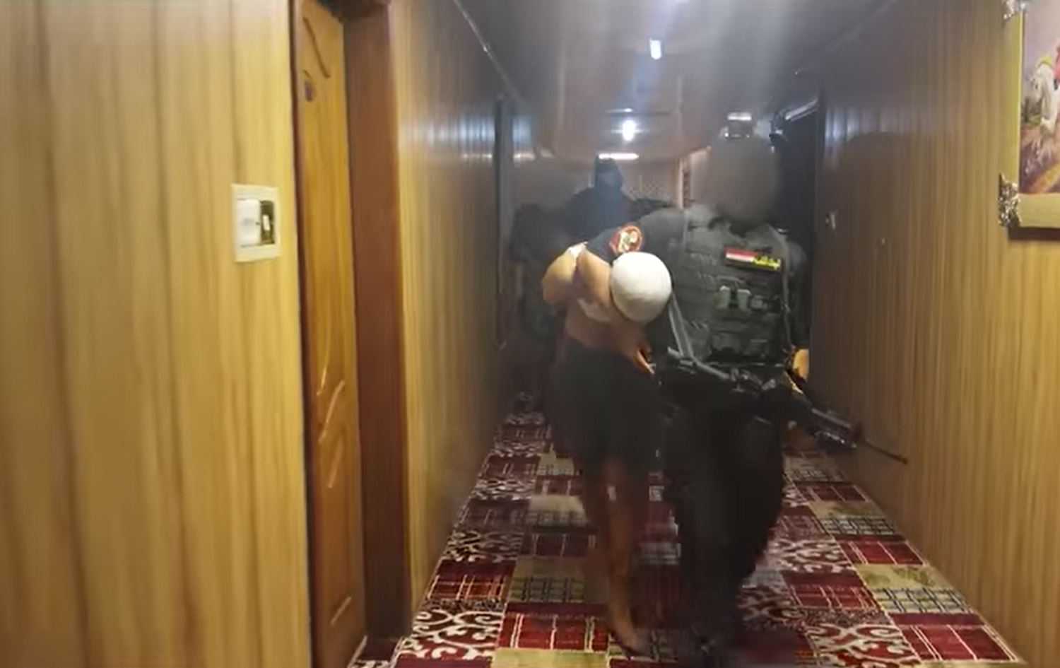 Iraqi security forces arresting the suspect accused of armoring vehicles and making improvised explosives for ISIS. Photo: screenshot/Iraqi National Security Service/Facebook