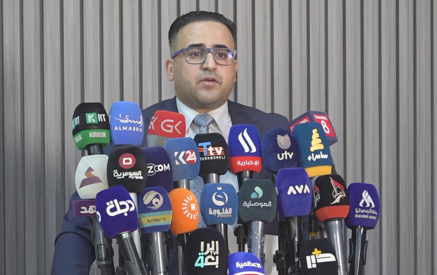 Iraqi health ministry spokesperson Saif al-Badr addressing journalists in a presser in Baghdad on October 13, 2024. Photo: Rudaw