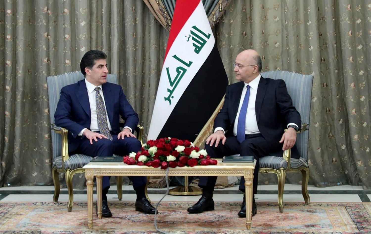 Iraqi President Barham Salih (right) meets with Nechirvan Barzani, President of the Kurdistan Region in Baghdad on November 13, 2019. Photo: AFP / Iraqi Presidency Media Office