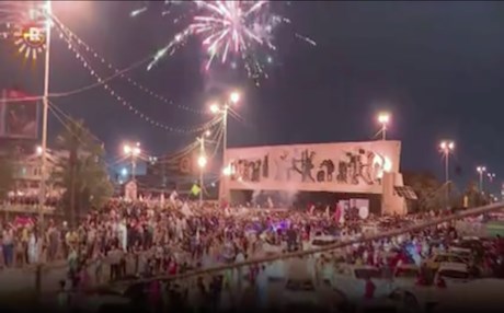 The celebrating Sadrists set off fireworks, honked horns, and waved flags and banners.