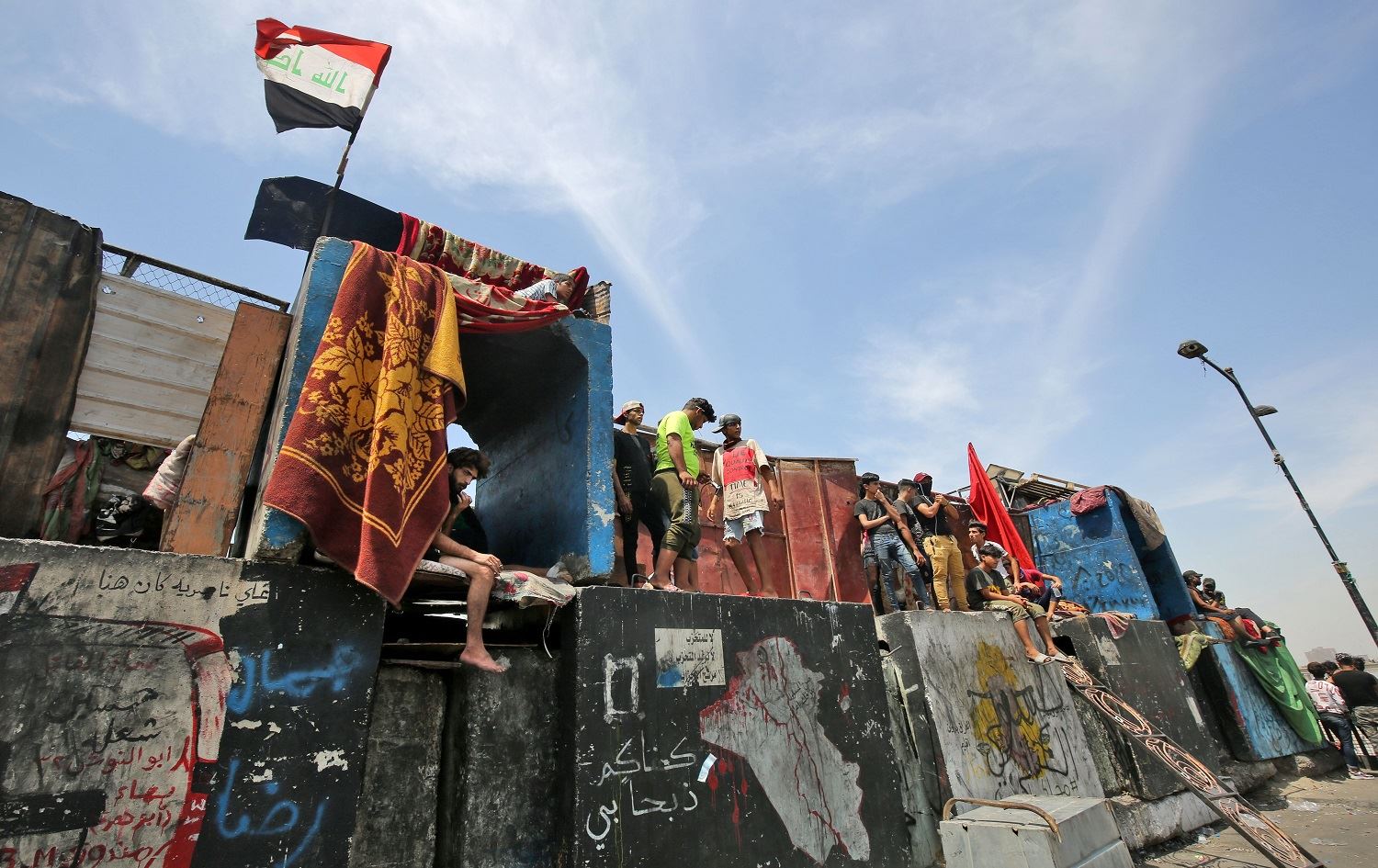Iraqi protesters gather on the al-Jumhuriyah bridge in the capital Baghdad on on May 14, 2020. Photo: Ahmad al-Rubaye/AFP