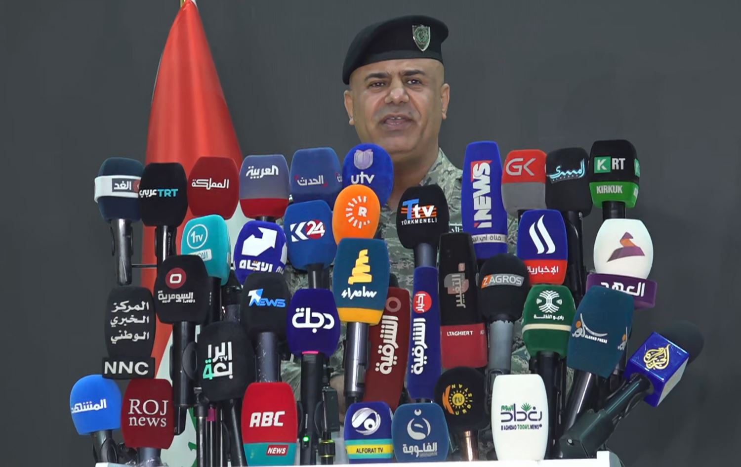 Iraqi interior ministry spokesperson Miqdad Miri speaking in a press conference on July 14, 2024. Photo: Rudaw