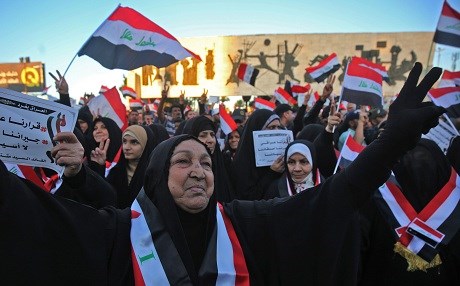 “Our decisions are Iraqi and our neighbors are our friends, not leaders” was a common slogan at the demonstration.