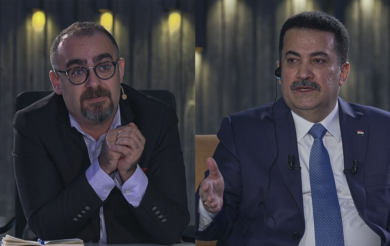 Iraqi Prime Minister Mohammed Shia' al-Sudani (left) speaks to Rudaw's Bestoon Othman as a guest on the 'Bestoon Talk' show in Baghdad on December 9, 2023. Graphic: Rudaw