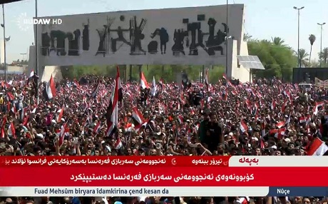 According to Rudaw’s correspondent at Tahrir Square, protesters were chanting “Kurds, Sunnis and Shiites are one, and Iraq is for all.”