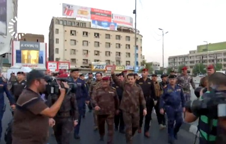 Iraq’s Interior Minister Qasim al-Araji walked through Baghdad’s Tahrir Square in the company of a large number of security forces on Saturday evening.