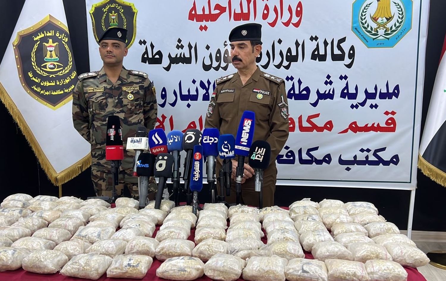 Iraqi police forces in western Anbar province arrested a drug dealer carrying a million captagon pills. Photo: INA